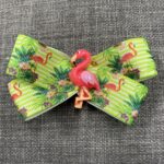 Grøn sløjfe til håret med flamingoer